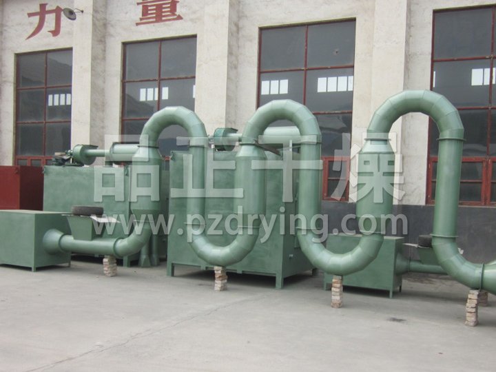 本機特別適合含濕量比較大的,濕物料呈膏糊狀,用其他氣流干燥方法無法干燥的物料,例如:白碳黑、醋酸乙烯及氯乙烯的共聚物,醋酸纖維絮,催化劑、 C.M.C、 CT—1樹脂、鍛石膏、電解二氧化錳、蒽醌磺酸銨鹽、氟石、硅藻土、硅膠催化劑、骨粉、高領土、過氯酸鉀磺銨類藥物、合成樹脂、活性面筋、活性白土、化學濾餅、金紅石型鉆白粉、癸二酸、硫酸銅、硫酸鋁、硫酸鈉、磷酸鈣、磷酸酯化淀粉、染料、檸檬酸鈣、煤泥、面圍形的面包加料米糠、粘土、粘土水泥、尿素、膨潤土、球形粘土、氫氧化鋁、氫氧化鋇、乳酸鈣、食品、水洗高領土、三聚氰酸、石膏槳、石灰、生物制品、碳黑、碳酸鈣漿、污泥渣、有機化學品硬脂酸鋁、氧化鐵、有機燃料、玉米蛋白飼料、陰濕泥漿、云母粉、藥劑、顏料、重鉻酸鉀紙漿、酒糟渣等。